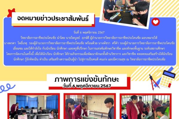 ข่าวประชาสัมพันธ์ การแข่งขันทักษะวิชาชีพและทักษะพื้นฐาน ระดับสถานศึกษา ประจำปีการศึกษา 2567 pkccec_rg00semc1 ปี ago1 ปี ago01 mins เพิ่มเติม..