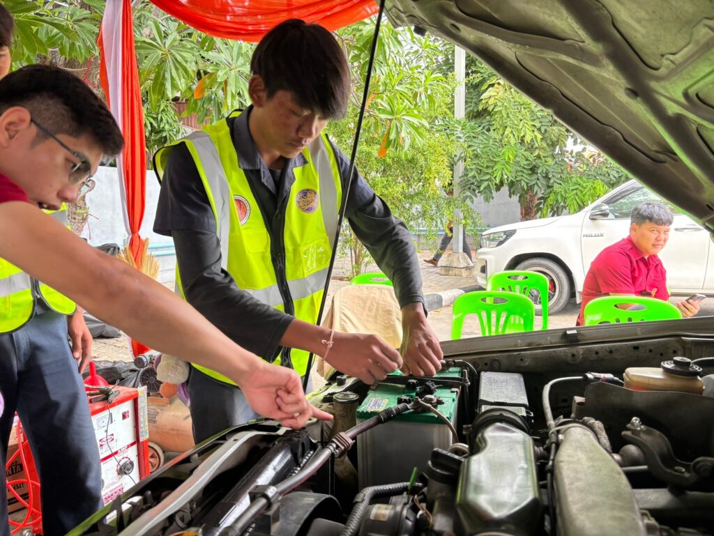 วันที่ 27 ธันวาคม พ.ศ.2567 นายไพบูลย์ ฤกษ์ดี ผู้อำนวยการวิทยาลัยการอาชีพประโคนชัย พร้อมด้วยผู้บริหาร ครูและบุคลากรทางการศึกษาวิทยาลัยการอาชีพประโคนชัย ร่วมพิธีเปิด จุดบริการ “อาชีวะ – ขนส่ง อาสาช่วยประชาชน เทศกาลปีใหม่ 2568” เพื่อส่งเสริม พัฒนาและสร้างประสบการณ์ด้านทักษะวิชาชีพ ตลอดจนปลูกฝังให้ผู้เรียนมีจิตอาสาโดยออกให้บริการตรวจเช็คสภาพรถ “ฟรี” แก่ประชาชน และช่วยเหลือกรณีฉุกเฉินเพื่อให้ประชาชนที่เดินทางสามารถเดินทางได้อย่างปลอดภัย พร้อมทั้งกับการบริการด้านอื่น ๆ เช่น น้ำดื่ม กาแฟ ผ้าเย็น ที่นั่งพักผ่อนให้ข้อมูลในการสอบถามเส้นทางต่าง ๆ ในช่วงเทศกาลปีใหม่ 2568 บนถนนสายหลักและสายรองทั่วประเทศ โดยดำเนินการ ระหว่างวันที่ 27 ธันวาคม 2567-5 มกราคม 2568 ตั้งแต่เวลา 06.00 – 18.00น. ณ สถานีเติมน้ำมันประโคนชัยปิโตรเลี่ยม (PTT) ถนนโชคชัย – เดชอุดม ตำบลประโคนชัย อำเภอประโคนชัย จังหวัดบุรีรัมย์