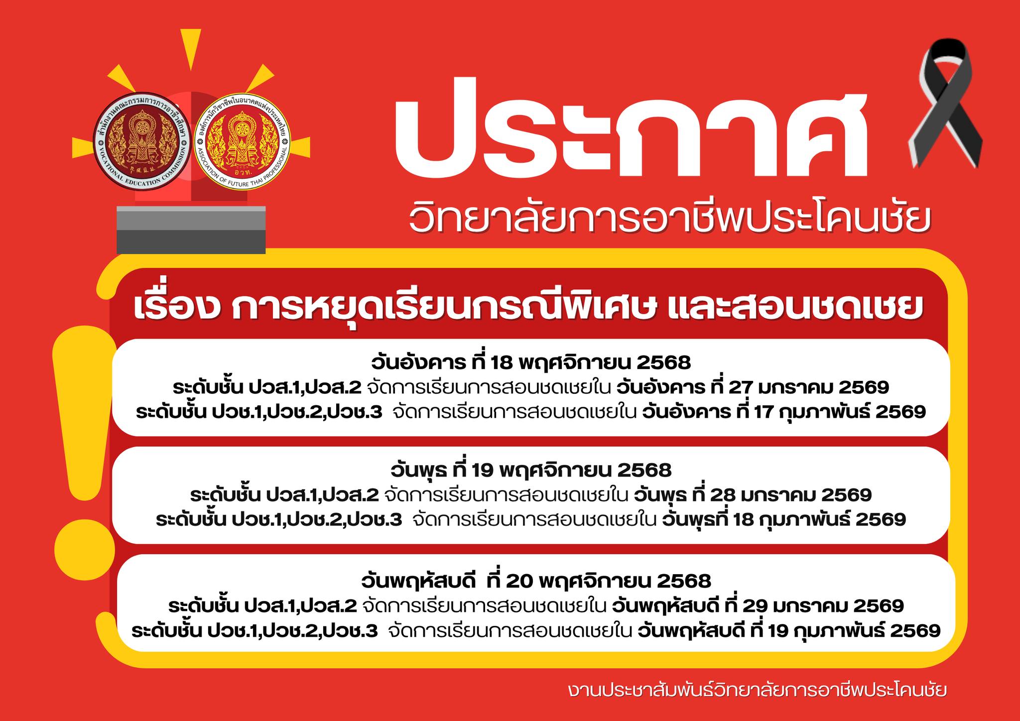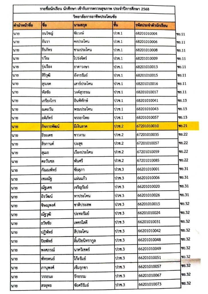 ประกาศประกาศ pkccec_rg00semc5 เดือน ago3 เดือน ago01 mins ประกาศวิทยาลัยการอาชีพประโคนชัยเรื่อง การหยุดเรียนกรณีพิเศษ และสอนชดเชย*วันพฤหัสบดี ที่ 20 พฤศจิกายน 2568 มีการตรวจสุขภาพให้นักเรียน นักศึกษาที่มีรายชื่อเข้ามารับการตรวจสุขภาพตามวันเวลาและสถานที่ที่กำหนด รายชื่อดังนี้ รายละเอียดเพิ่มเติม แนะแนวเรื่อง Previous: ประชาสัมพันธ์Next: ประชาสัมพันธ์ ใส่ความเห็น ยกเลิกการตอบอีเมลของคุณจะไม่แสดงให้คนอื่นเห็น ช่องข้อมูลจำเป็นถูกทำเครื่องหมาย *ความเห็น * ชื่อ * อีเมล * เว็บไซต์ บันทึกชื่อ, อีเมล และชื่อเว็บไซต์ของฉันบนเบราว์เซอร์นี้ สำหรับการแสดงความเห็นครั้งถัดไป