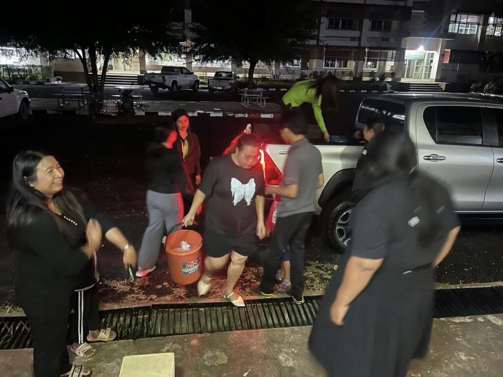 ที่ได้นำน้ำเต้าหู้อุ่นๆ มามอบให้กับผู้อพยพ ณ ศูนย์พักคอย วิทยาลัยการอาชีพประโคนชัย