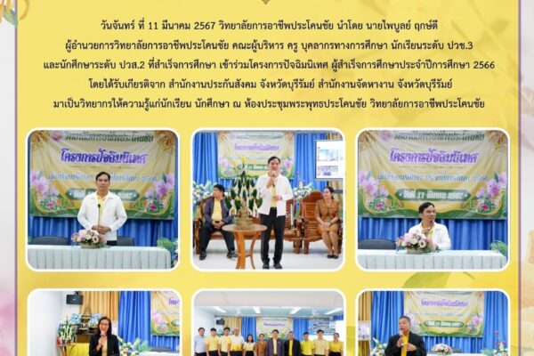 วันจันทร์ ที่ 11 มีนาคม 2567 วิทยาลัยการอาชีพประโคนชัย …
